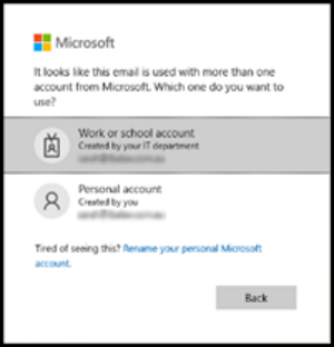 If you have multiple Microsoft accounts choose ‘work or school account’.