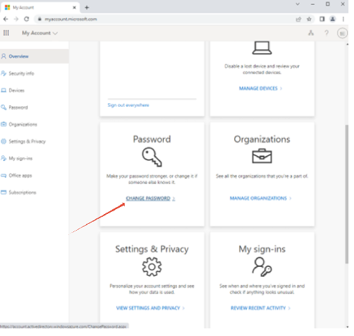 Step 1. Open a browser and navigate to myaccount.microsoft.com.