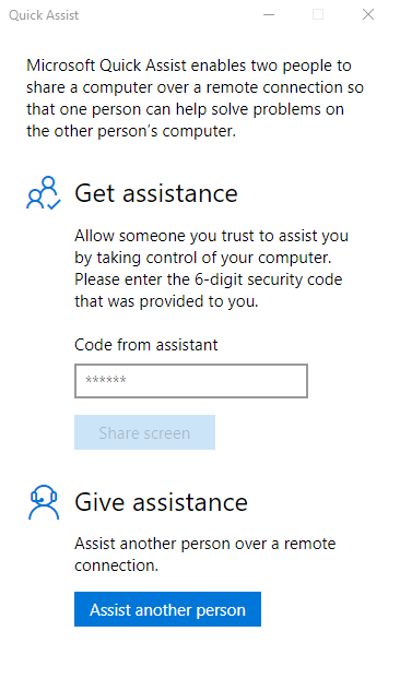 To offer remote assistance to a colleague, open Quick Assist and click "Assist another person." The system will generate a 6-digit code, which you can then provide to your colleague to establish the remote support session.