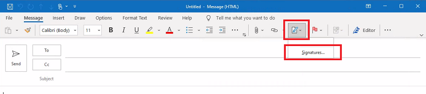 To set this copied email signature as your default signature, draft a new email, select Signatures and select your default signatures.