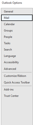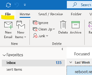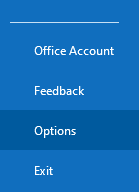 In Outlook navigate to the "File" menu from the left top corner. Then down to "Options".