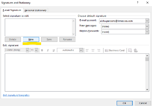 You can create a new signature by clicking the New button.