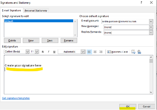 Where possible, your email signature has been copied from your old system to the Cloud PC.