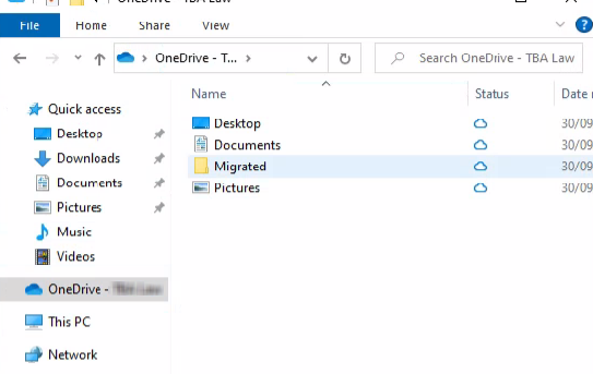 Any personal files (Desktop, Documents, Pictures, etc) have been copied from your previous system to the Migrated Folder within your Microsoft OneDrive account.