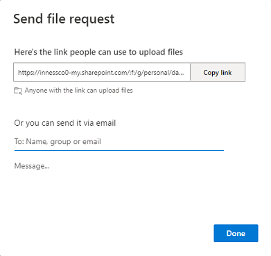 OneDrive offers a convenient feature to request files from clients. This tool is especially useful when you need to receive a large number of files or large-sized documents that are not feasible to transmit via email.