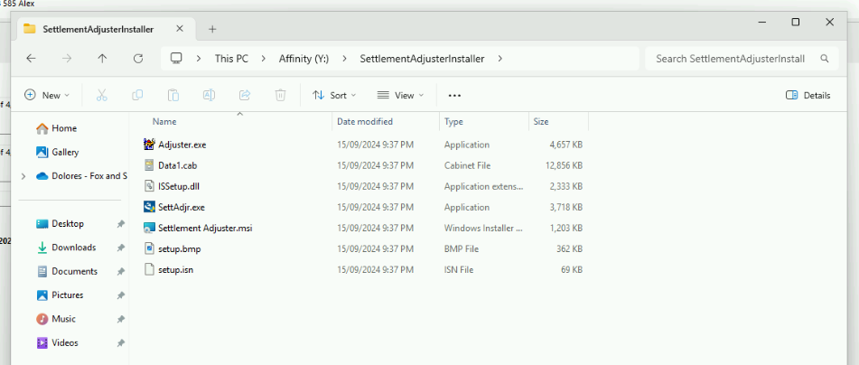 Go to File Explorer, find Y:\SettlementAdjusterInstaller (type in the bar) scroll to SettAdjr.exe, double click that to run. (May require run as administrator, i.e., it.admin@...)