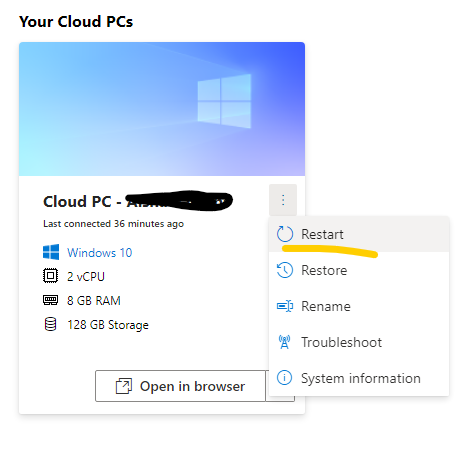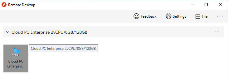 Once your Cloud PC has rebooted you can open your Cloud PC again via the Remote Desktop app.