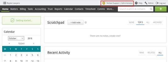 3. Click onto your profile located in the top right-hand corner of your Actionstep browser. See below: