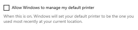 Disable Automatic Printer Management: Within the “Printers & scanners” section, find the option "Let Windows manage my default printer". Uncheck this box to enable manual selection of your default printer.