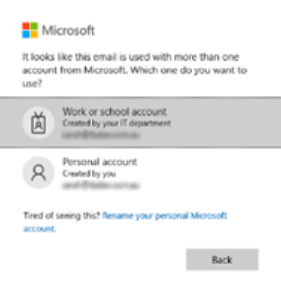 If you have multiple Microsoft accounts choose ‘work or school account’.
