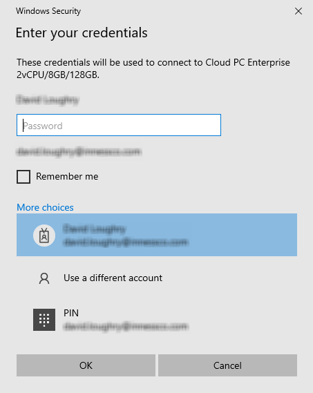 Note: If you are prompted to enter a PIN, you will need to select "More choices" so that you can enter a password.