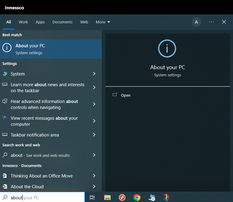 Lastly, you will need to find the "Device Name" of your PC. Go to the search bar and type "about".