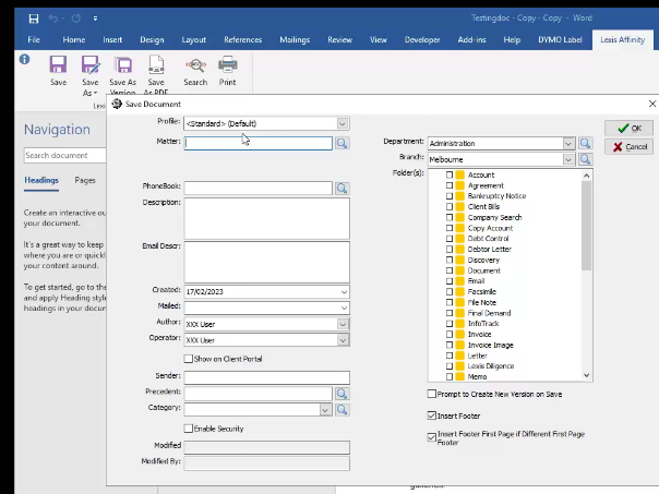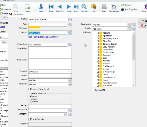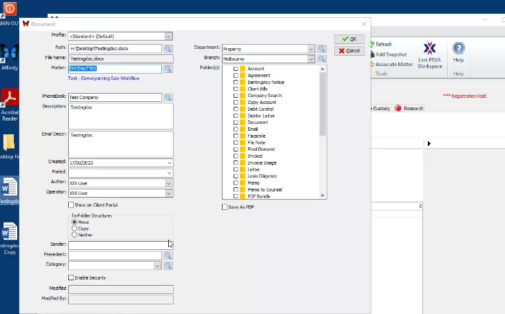 Here we can check the matter information to make sure it is saved correctly. Choose the "Move" option and "OK". The document will be saved in Affinity and deleted from the desktop.