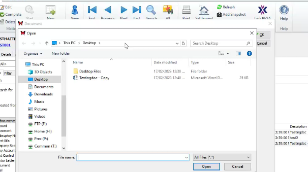 From here you can search for the Matter. You may need to add further information (description, etc.) because the info is not populated from the file name like it is with the "Click Drag" method.