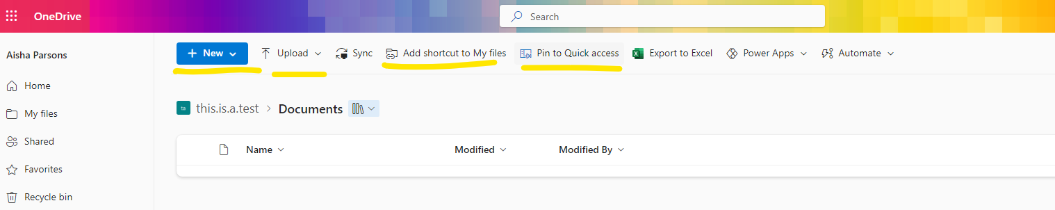 If you are collaborating with colleagues on a matter, you may want to create a shared library in OneDrive.