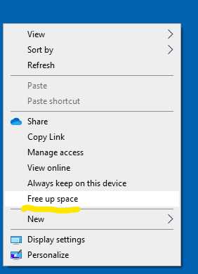 Right click your desktop screen to bring up this menu. Click on "Free up space".