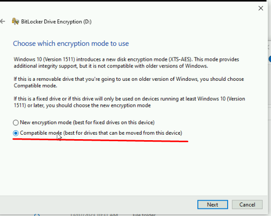 7. Select 'Compatible mode (best for drives that can be moved from device)'.
