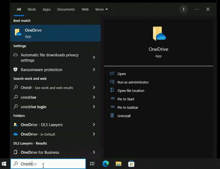 Note: If you can't see the OneDrive in file explorer, please search for OneDrive and click on it.