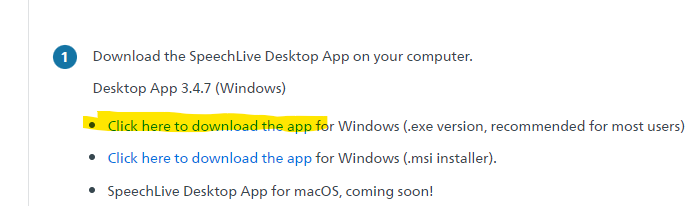 - Download and install the Desktop App (local PC, not CloudPC) from this link https://www.speechlive.com/au/help/topic/speechlive-desktop-app/installation/