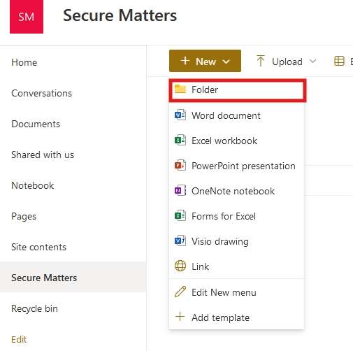 - In your SharePoint site, navigate to the Document Library where you want to create folders.