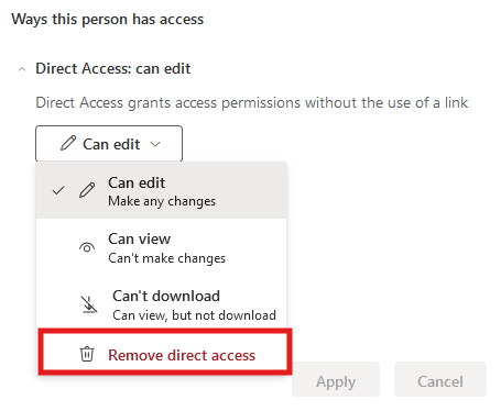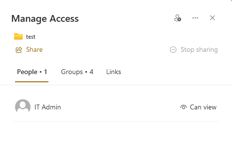 - In the Manage Access pane, you’ll see a list of people and groups with permissions to this folder, along with their access levels (e.g., Edit, View Only).