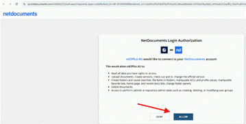 - Click the “Please log in” link which will open NetDocuments in your browser.