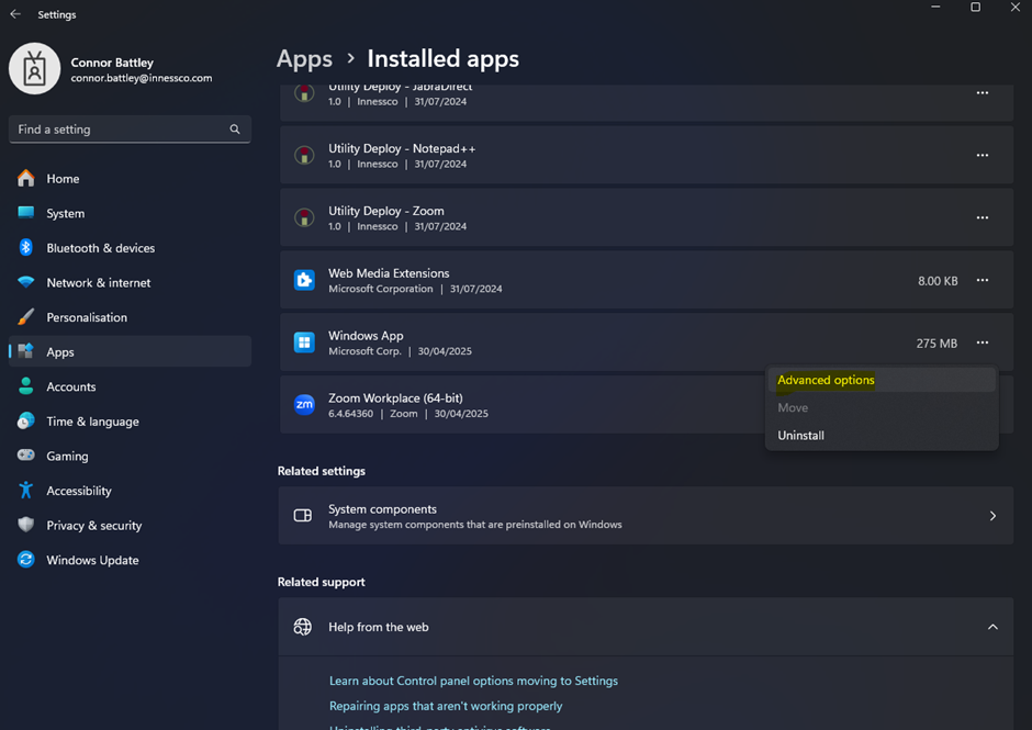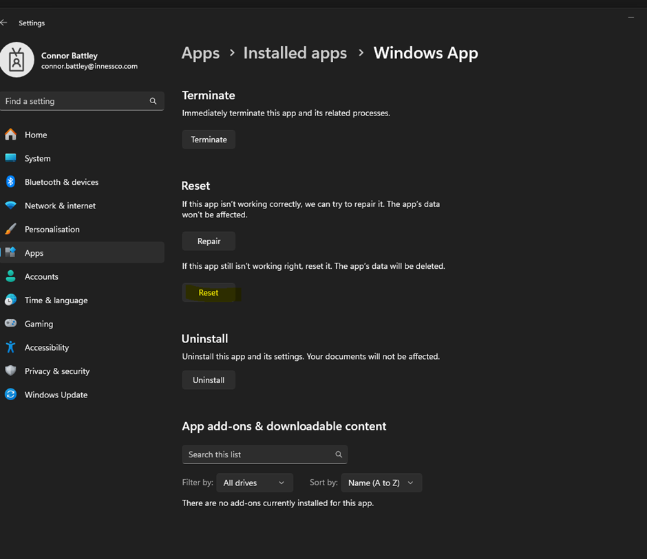 Please note: After the reset process is complete, the Windows App will revert to its default settings and will no longer be pinned to your taskbar.