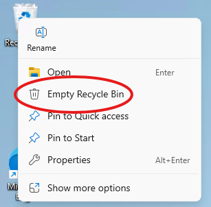 Right-Click and press the option "Empty Recycle Bin"