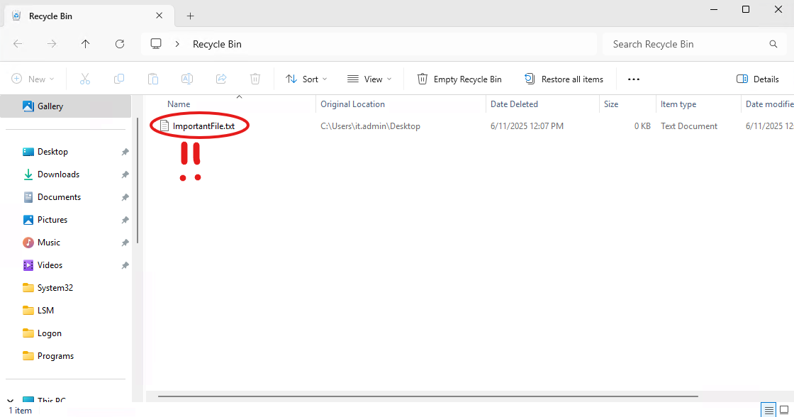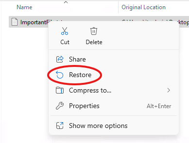 If you notice that there are any files you still need, simply select the File, Right-Click and Restore