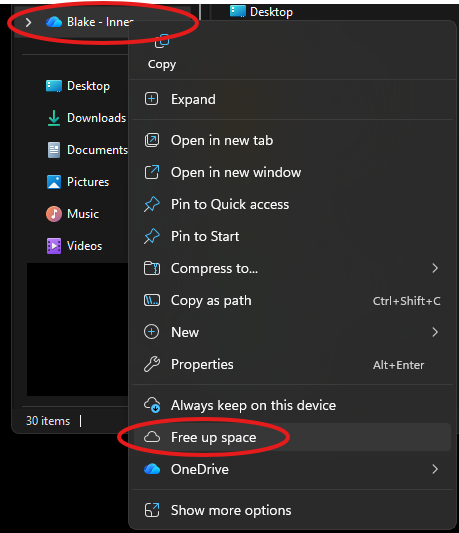 Note 1: This will NOT delete items from your OneDrive. It will only delete the locally-saved copies from your Cloud PC. If you need to access them again later, OneDrive will redownload them to your device.