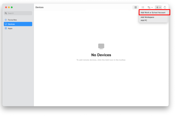 Step 2: Once installed, open the app, click the “+” icon, then select “Add Work or School Account” and follow the prompts.